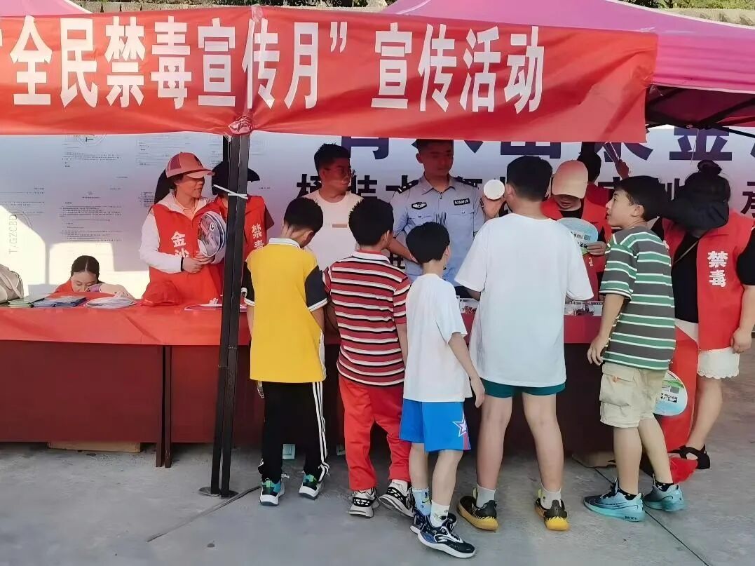 贵州省第一强制隔离戒毒所驻金沙县“专地融合”站联合县禁毒办、鼓场街道禁毒办来到金沙县第三届“禁毒杯”篮球赛比赛现场,共同开展以“健康人生·绿色无毒”为主题的禁毒宣传活动。