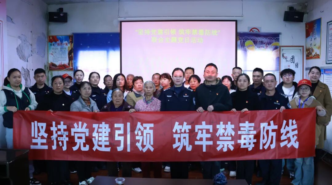 2025年10月29日,六盘水强制隔离戒毒所(以下简称:六盘水所)部分党支部联合六盘水师范学院文学与新闻学院教工党支部、学生党支部、六盘水市钟山区大河镇红旗社区党支部、大河社区党支部在钟山区大河镇开展“坚持党建引领 筑牢禁毒防线”主题党日活动。