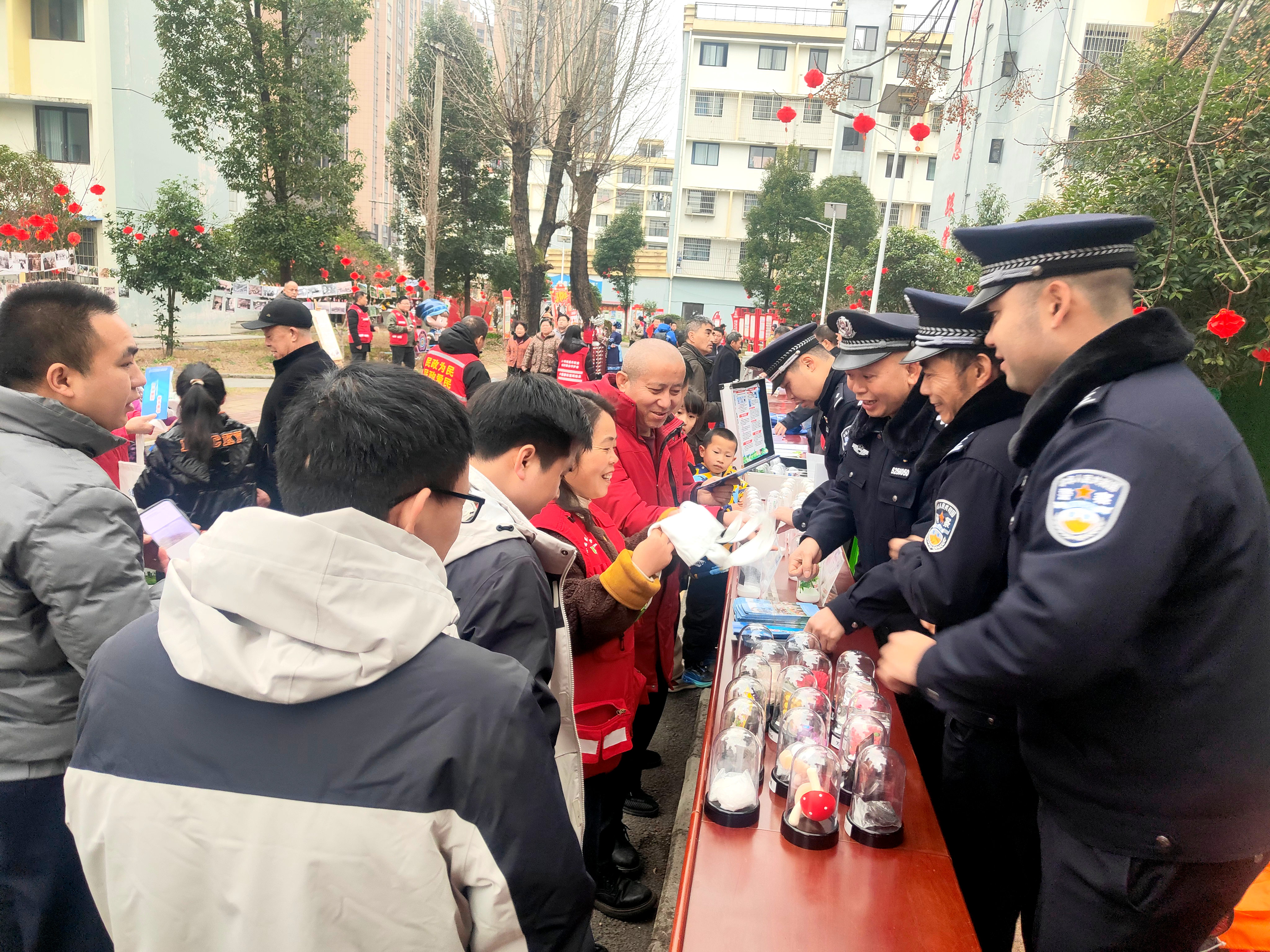 近日,贵州省都匀强制隔离戒毒所“先锋笃行”禁毒戒毒宣传队走进都匀市小围寨街道思源社区开展禁毒教育宣传活动,以禁毒宣传助力营造平安喜乐的新春氛围。