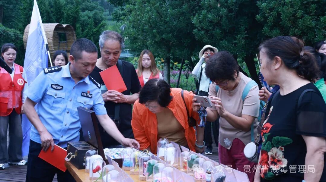 在钟山区大河镇渡口村和大河堡景区,六盘水所民警播放了禁毒宣传片,并通过派发禁毒宣传小册子及禁毒宣传品、展示毒品仿真模型等方式,向游客、群众普及禁毒防毒知识。