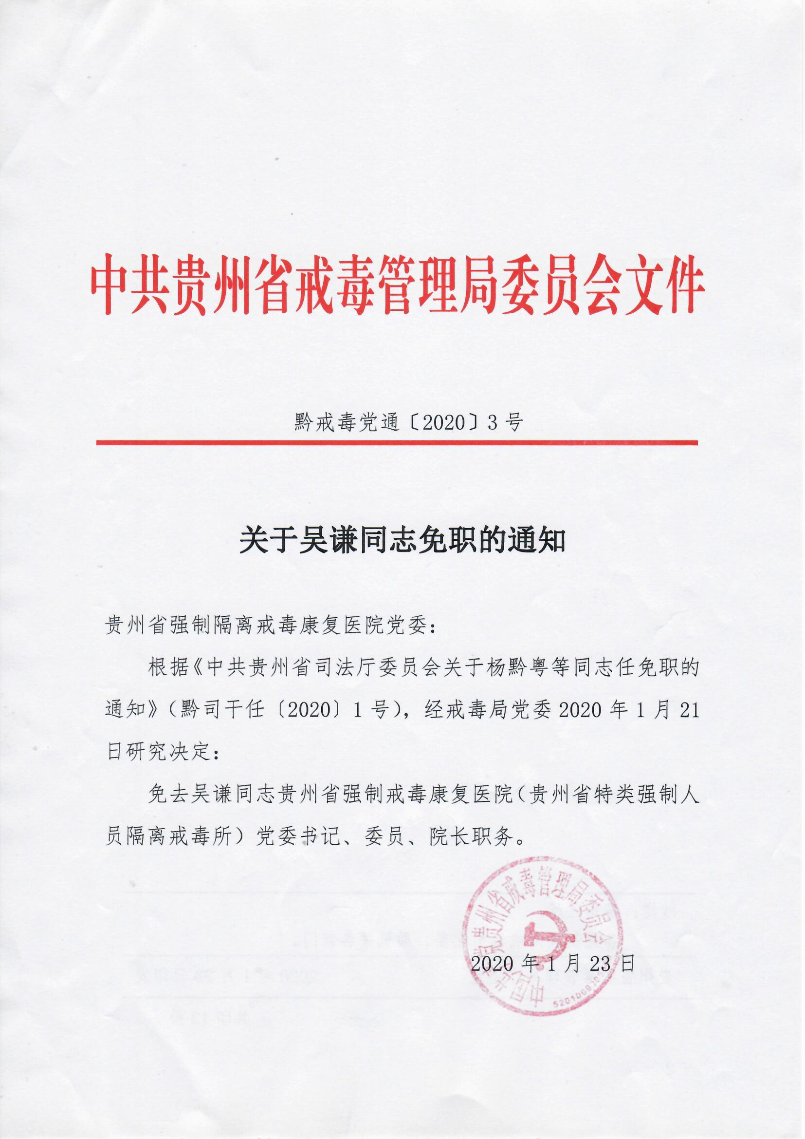 关于吴谦免职的通知